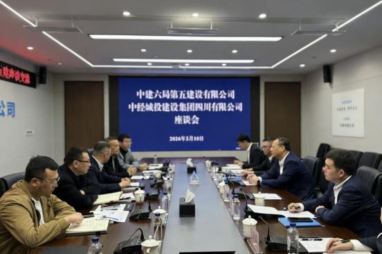 3月10日上午,中经城投建设集团四川有限公司(以下简称“中经四川”)党委书记、董事长陈川率队赴中建六局第五建设有限公司(以下简称“六局五建”)开展专题座谈交流。六局五建党委副书记、总经理刘玉龙携相关领导班子成员出席,双方围绕深化战略合作、拓展合作领域、实现互利共赢等核心议题深入探讨,凝聚合作共识,擘画协同发展蓝图。